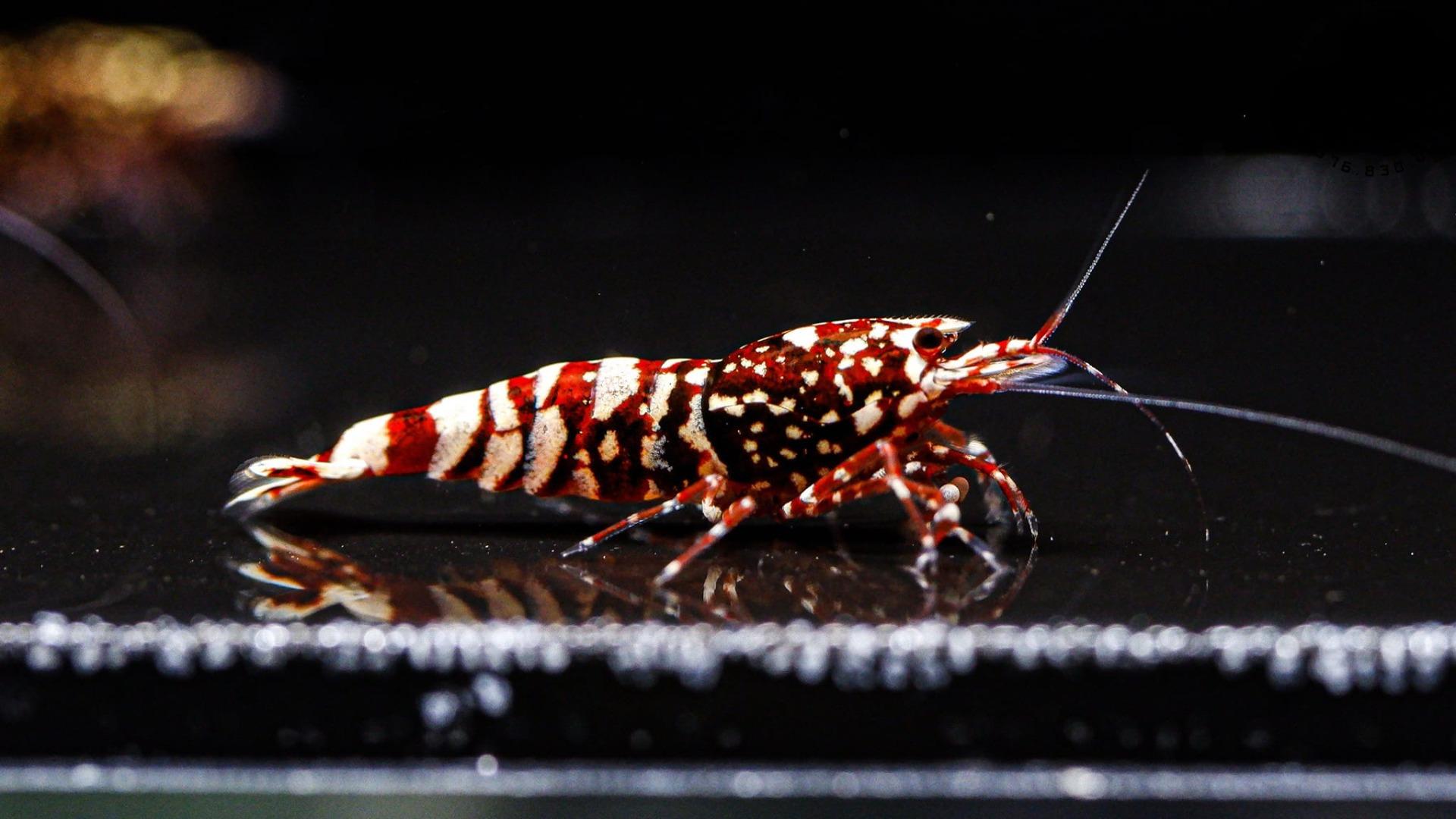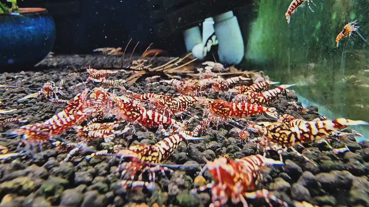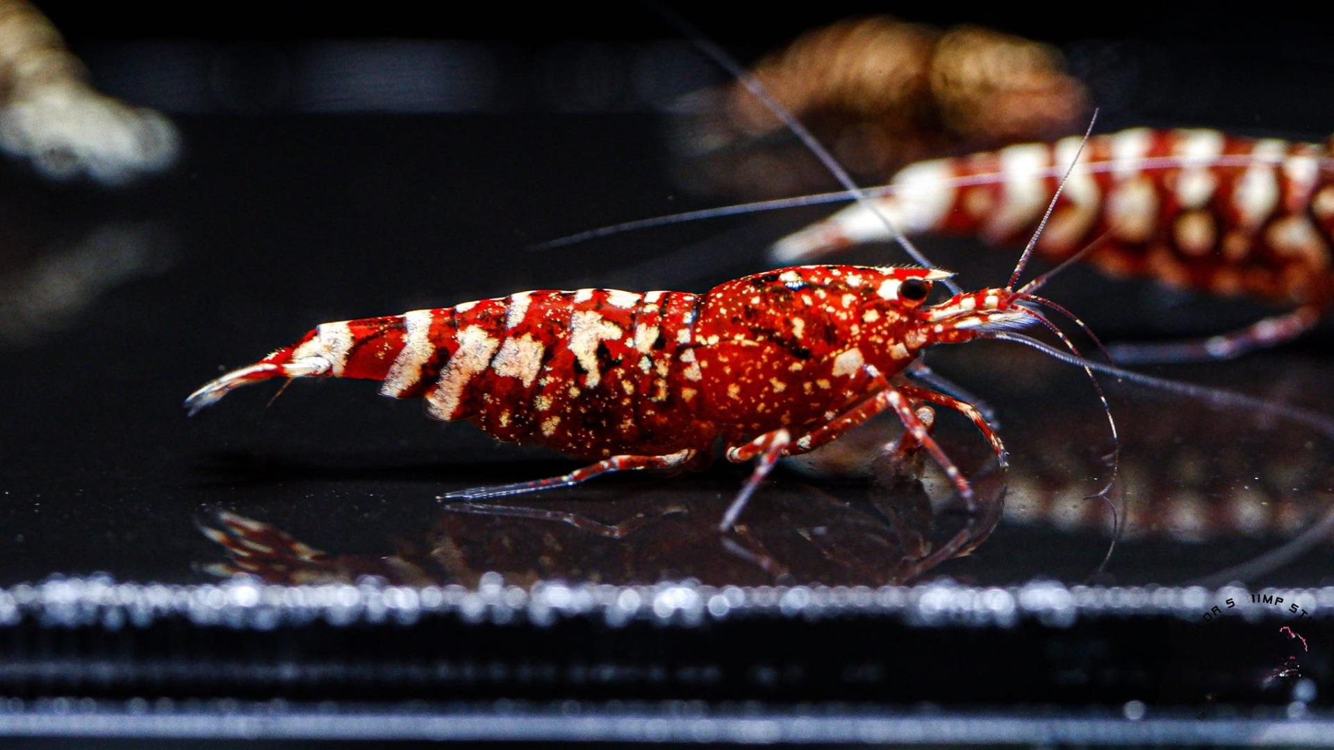 The unique Red Zebra Stardust shrimp is a striking addition to any aquarist's collection. Carefully bred from a cross between two prized Caridina shrimp species, the Galaxy Pinto and the Nanacy Pinto, this exquisite shrimp features distinctive white "stars" on its cheeks and a bold Zebra pattern on its body. Its genetics make it a valuable and sought after shrimp, with the price determined by factors such as color, size, pattern, and sex. Its rarity and difficulty to replicate make it a highly desirable find for any shrimp keeper.