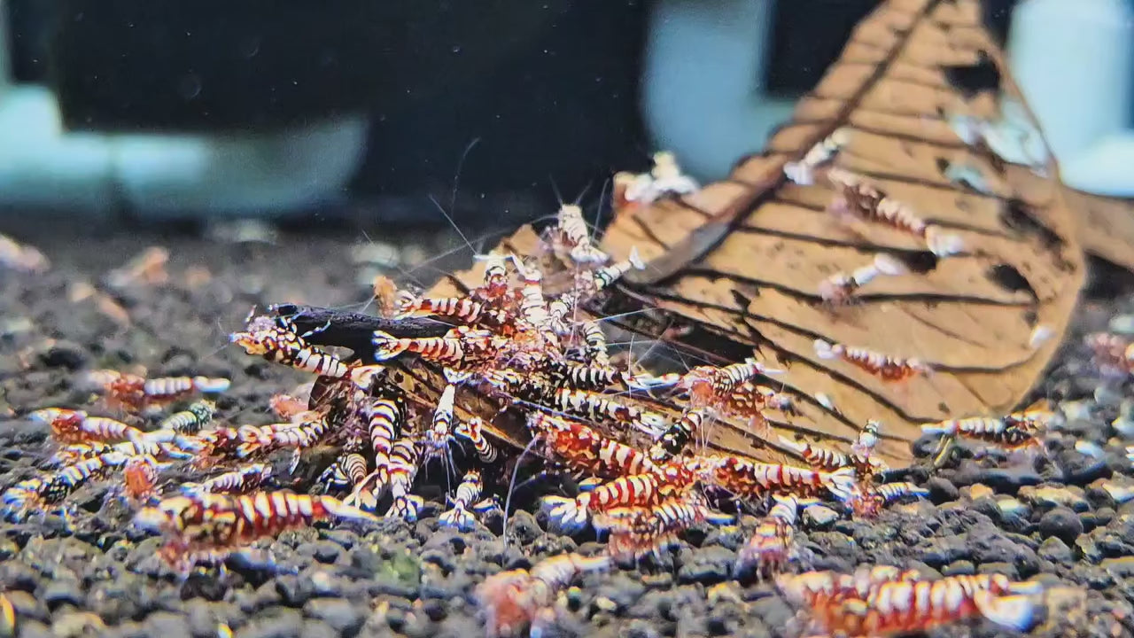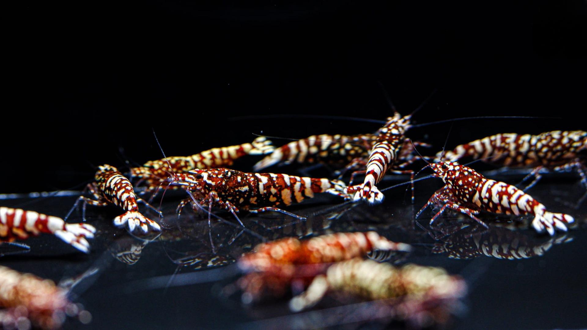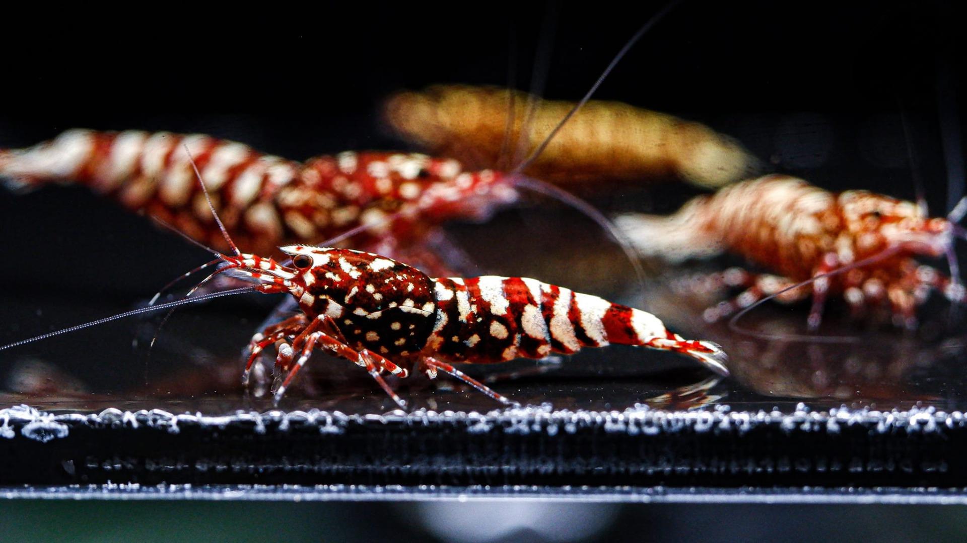 The unique Red Zebra Stardust shrimp is a striking addition to any aquarist's collection. Carefully bred from a cross between two prized Caridina shrimp species, the Galaxy Pinto and the Nanacy Pinto, this exquisite shrimp features distinctive white "stars" on its cheeks and a bold Zebra pattern on its body. Its genetics make it a valuable and sought after shrimp, with the price determined by factors such as color, size, pattern, and sex. Its rarity and difficulty to replicate make it a highly desirable find for any shrimp keeper.