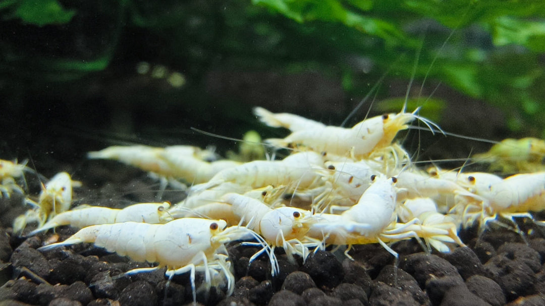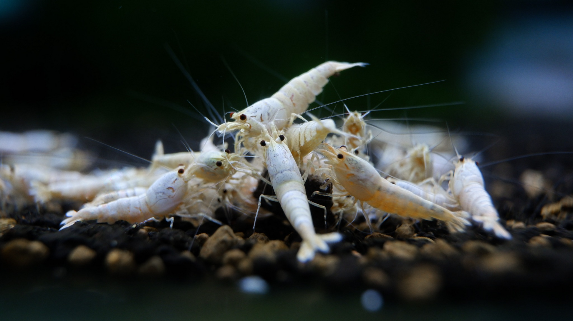 Snow White Shrimps have been meticulously developed through extensive selective breeding, originating from their Golden Bee ancestors. Achieving the purest white coloration possible from Golden Bees, Snow White Shrimps stand as the epitome of immaculate white beauty. Please note, our Snow Whites will have some pinkish and yellow hues, as show in the pictures, but we do our best to minimize these are focus achieving as much solid white as possible.